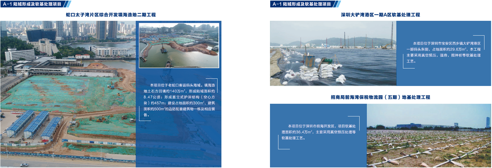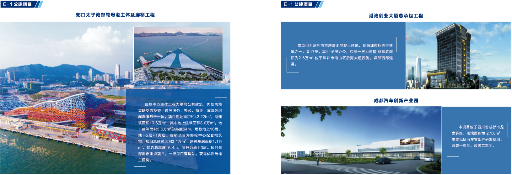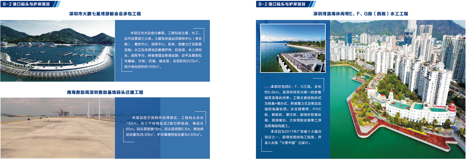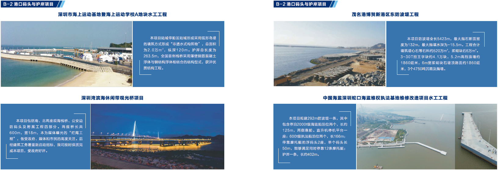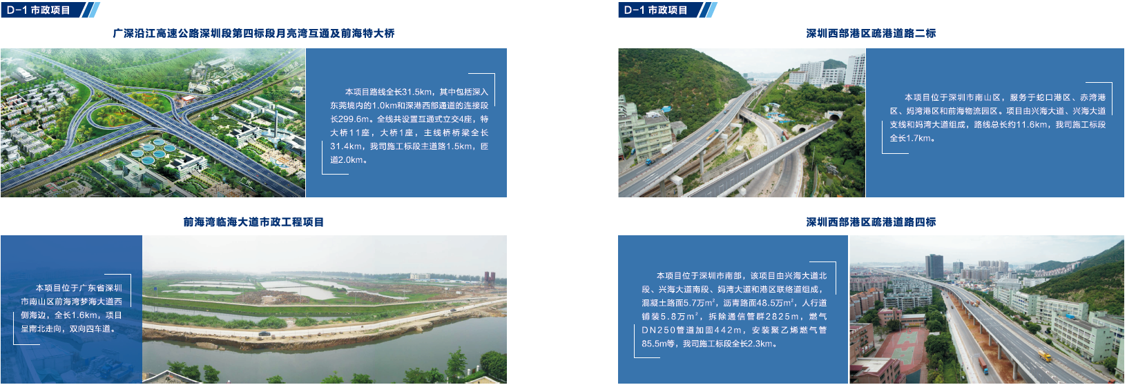 改制后,公司进入了新的发展时期,先后承建或参建了广深沿江高速公路、港珠澳大桥、深圳太子湾邮轮母港工程、深圳湾滨海休闲带西段工程、大空港深圳国际会展中心工程等多个重点建筑项目,其中公司参建的太子湾邮轮中心主体工程项目和SCT三期工程项目获得国家优质工程奖,深圳海上运动基地A地块项目获全国优秀管理奖,深圳湾滨海休闲带西段工程荣登央视《新闻联播》和央视一套《大美中国》栏目,被誉为“最美都市海岸线”。