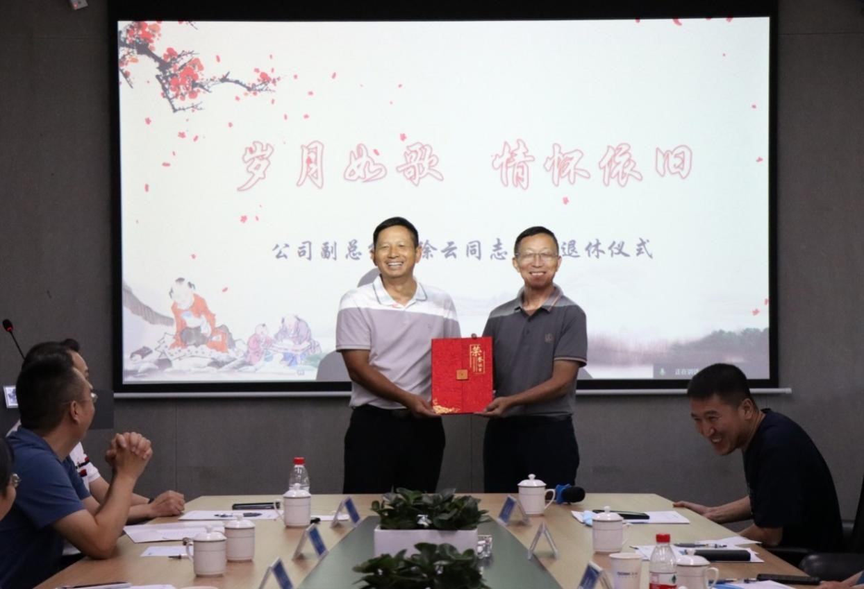 会议期间,公司为副总经理徐云先生举行了一场温馨的荣休仪式。公司总经理万泗新暖心致辞,常务副总经理张体贵为徐云先生颁发荣休证书并送上荣休纪念品,随后徐云先生发表荣休感言,大家纷纷为他送上最诚挚的祝福。