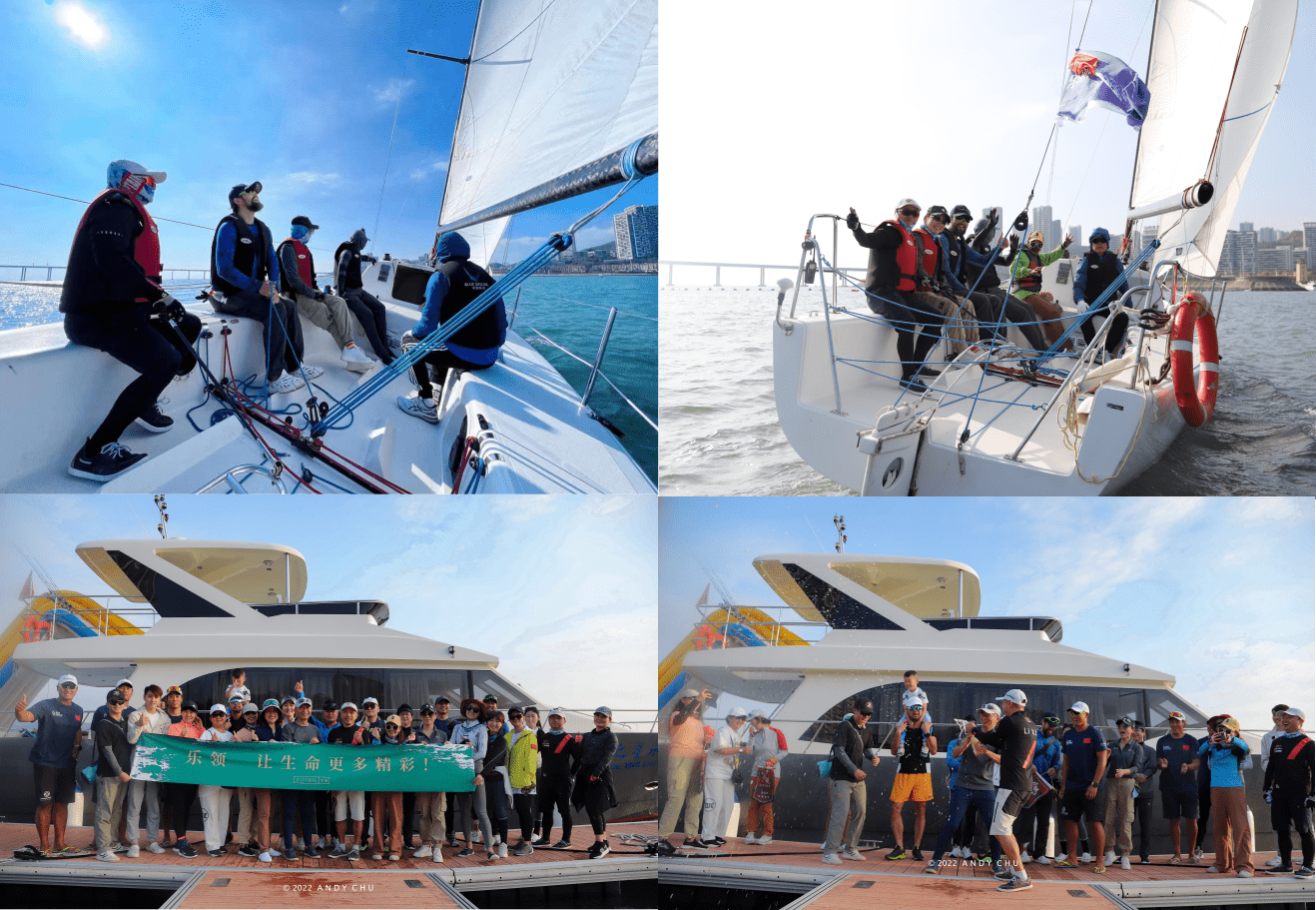 本次帆船赛事,由“乐领扬帆一队”“乐领扬帆二队”“乐领扬帆三队”“乐领扬帆四队”四支船队组成。
