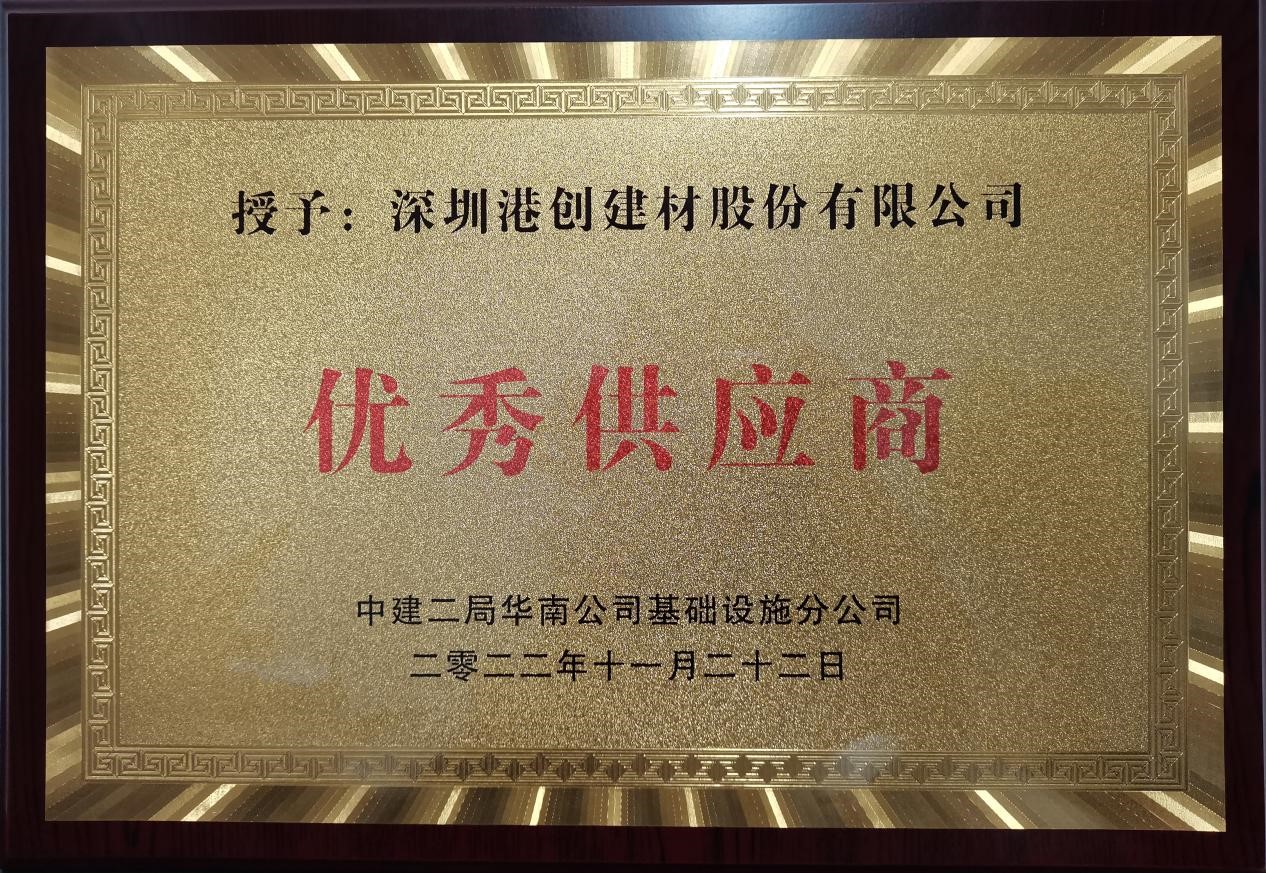 11月22日,深圳港创建材股份有限公司下属蛇口港创公司在中建二局华南公司基础设施分公司2022年度分供方大会上荣获“优秀供应商”称号。