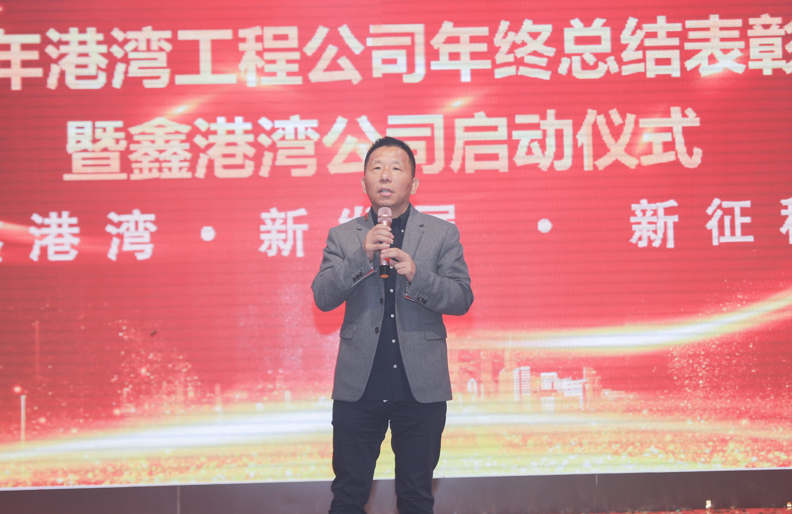 集团副总裁、港湾工程公司董事长徐健在致辞中表示,久违的年会活动终于让大家相聚于此,近三年在新冠疫情的洗礼和国家对房地产行业的深度调整下,公司负重前行,经营发展受到了一定的影响。但在集团的正确指引和公司总经理的带领下,公司上下齐心协力,在积极开拓市场的同时,强化内部管理,基本保持了公司的稳定发展。徐总指出,2023年将是公司发展关键的一年,经济的复苏将会带来更多的机遇和挑战,开拓市场、强化管理、深化调整将成为工作的“主旋律”。员工是公司的宝贵财富,美好的明天寄希望于全体员工共同努力奋斗,希望大家一起携手,积极面对、开源节流、降本增效,在集团董事长、总裁刘裕的正确领导下,秉承“容和存在”核心价值观,向“快乐港湾”这一朴实厚重的企业愿景进军。