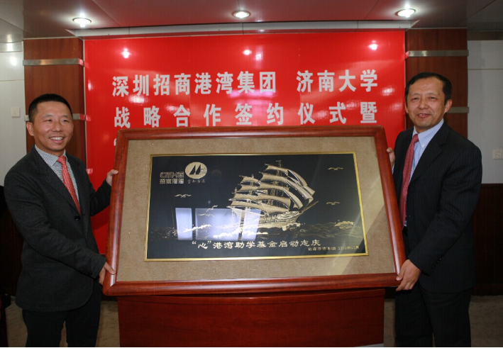 签约仪式后,双方举行了“心•港湾”慈善助学基金捐赠暨启动仪式。校党委书记、济南大学教育发展基金会理事长范跃进代表学校接受了尊龙官方捐赠的100万元的慈善助学基金及纪念品。深圳尊龙官方副总裁徐健详细介绍了“心•港湾”慈善助学基金设立的初衷和运作模式。