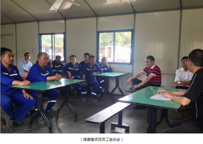 关注海外员工的工作及生活情况也是万总此行考察的重点。期间,万总深入项目现场和员工宿舍,与基层员工进行了面对面的交流,聆听基层员工的诉求,特别是对公司在管理过程中的意见和建议,及时解决员工工作和生活中的困难。