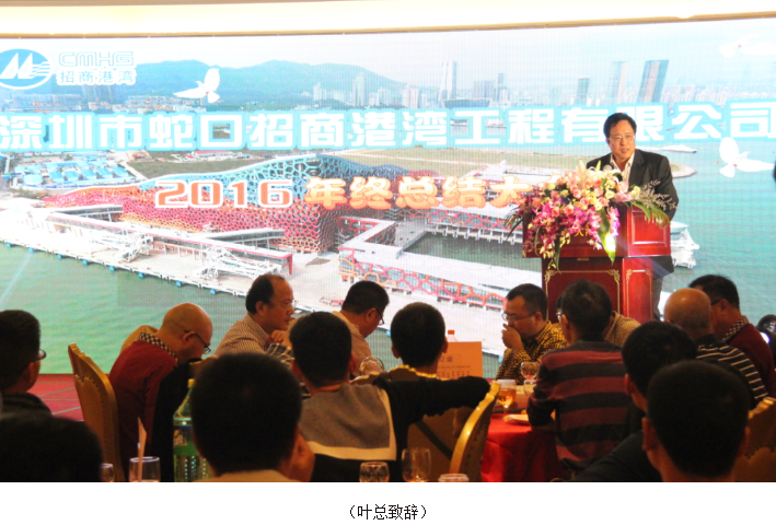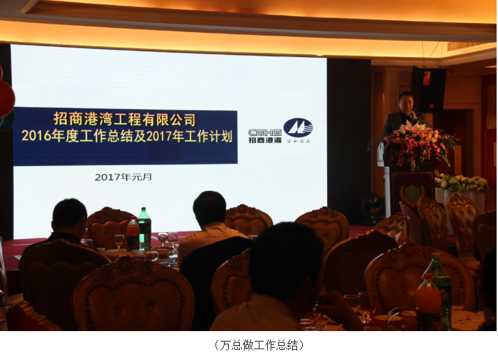 猴奔前程去,鸡随好运来!2017年1月7日,深圳市蛇口招商港湾工程有限公司隆重举行2016年年终总结暨表彰大会。尊龙官方常务副总裁兼工程公司董事长叶存华先生,集团副总裁兼财务总监徐健先生、集团副总裁兼工程公司总经理万泗新先生等领导与全体员工一起欢聚一堂,总结过去一年的经营成绩,展望2017年新的奋斗征程。