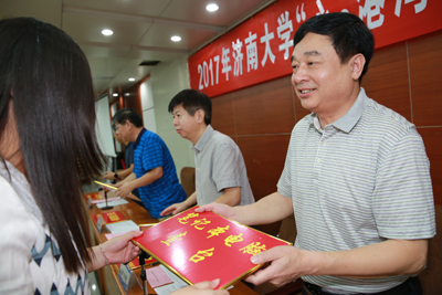 济南大学教务处处长黄加栋、学生工作处副处长孙喜武分别宣读了第一期“济南大学-深圳港创创新实验班”学生及获得2017年“心·港湾”慈善助学金学生名单,出席仪式的领导、嘉宾为“港创创新实验班”学生颁发了笔记本电脑,为2017年“心·港湾”慈善助学金受资助学生发放了助学金。第一期“港创创新实验班”学生、材料科学与工程学院李扬同学分享了自己暑假到招港集团实习的收获和感悟;物理科学与技术学院殷慧敏同学代表受资助的学生,感谢集团与学校的关爱,表示将不负期望,努力学习,回报学校、企业和社会。