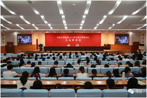 3:30分,济南大学举办建校七十周年校庆系列活动——企业家讲坛,由济大校长张士强主持,济大港创实验班学员和材料学院、商学院等350余名师生参加了演讲会。刘董事长受邀参加,并以济南大学顾问教授的名义,在学校第一学术报告厅以《选择的原则》为题,进行了精彩的演讲。