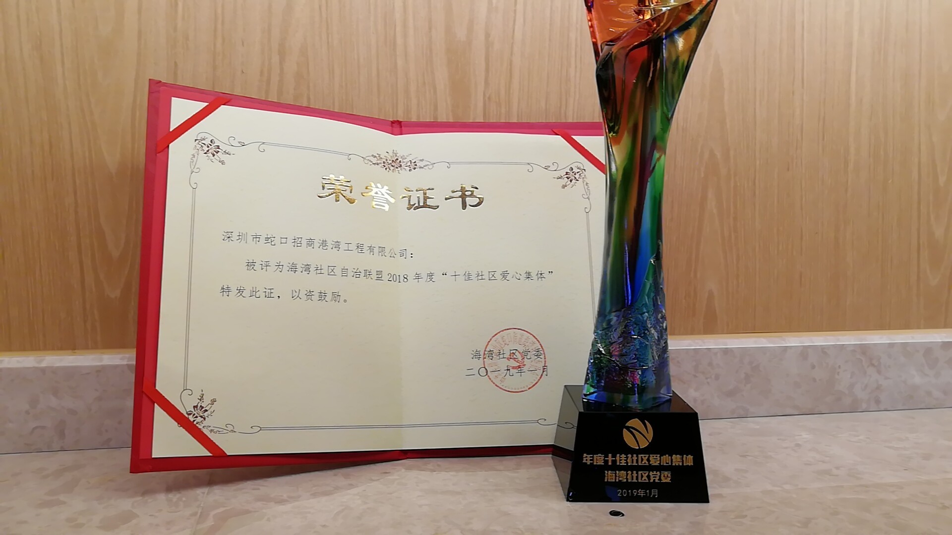 2019年1月,深圳市蛇口招商港湾工程有限公司被评为海湾社区自治联盟2018年度“十佳社区爱心集体”。