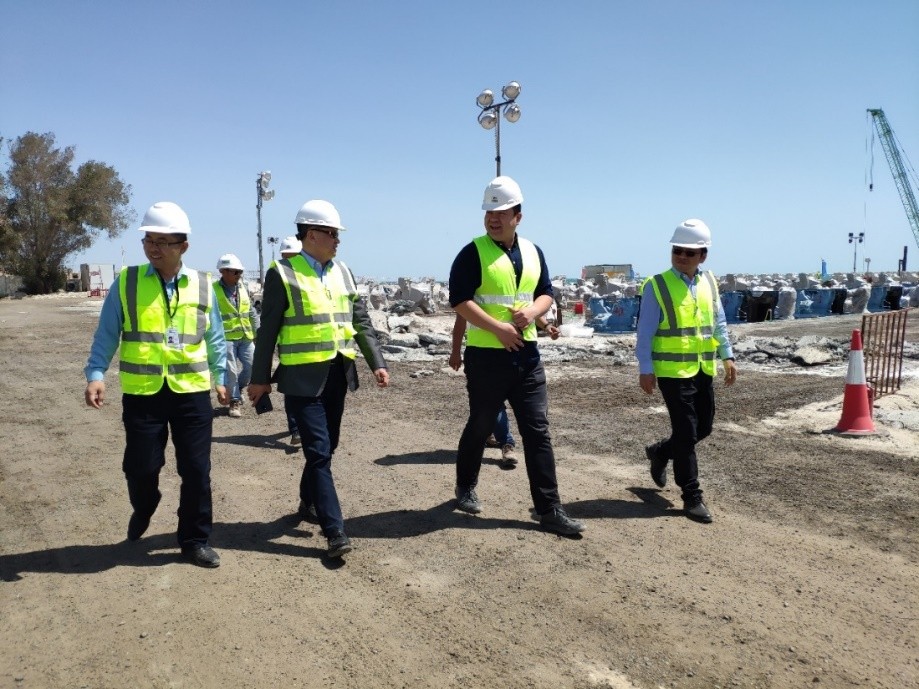 科威特时间4月24日,中国港湾工程有限责任公司副总经理贠亮在中国港湾中东区域管理中心副总经理郑建军、科威特办事处总经理黄祖华的陪同下,视察了招商建设国际有限公司科威特国家卫队游艇码头项目。这是贠总第二次视察科威特游艇码头项目。