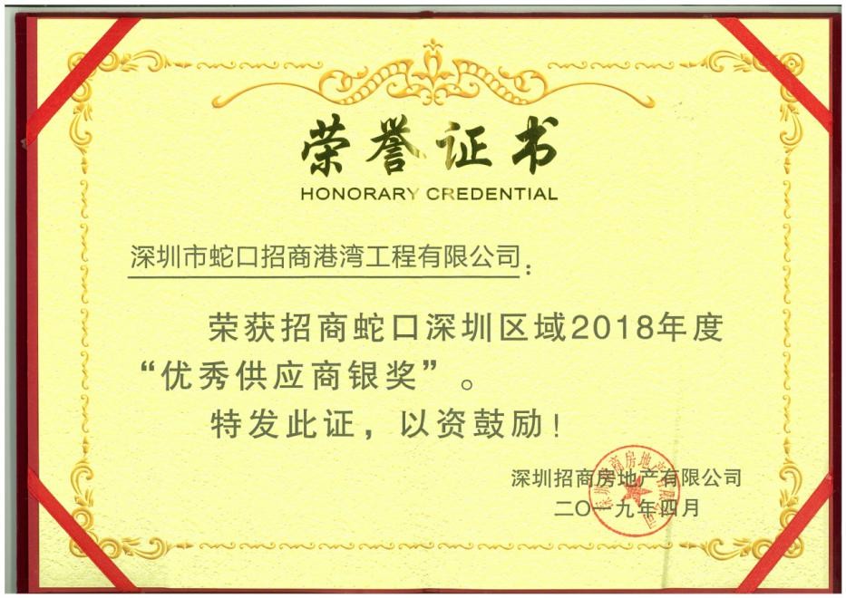 4月19日下午,招商蛇口深圳区域2019年供应商年会在深圳蛇口风华大剧院隆重召开,深圳市蛇口招商港湾工程有限公司荣获招商蛇口深圳区域“2018年度优秀供应商银奖”,公司总经理李权锋先生代表公司上台领奖。获此殊荣,是公司全体员工同心协力、辛勤努力的结果,也是招商蛇口对公司的充分肯定。