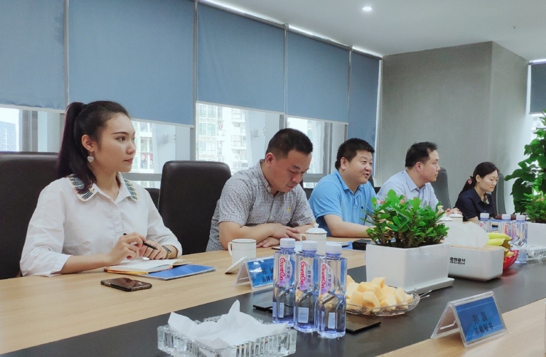 继4月19日深圳港创建材股份有限公司与上海君道住宅工业有限公司签订合作框架协议后,5月28日,上海君道住工公司董事长秦少秋、副总裁宋培等一行5人莅临港创建材公司参观考察,集团董事长、总裁刘裕携公司总经理孙文、副总经理李杰、法务总监吴芹芹及集团总裁秘书孙磊热情接待来访领导并进行座谈。