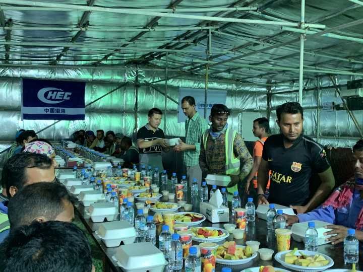当地时间6月2日,招商建设国际有限公司卡塔尔自贸区项目部与中国港湾工程有限责任公司卡塔尔办事处联合组织开展穆斯林斋月施斋慰问活动,为现场工作的一线基层穆斯林职工派发开斋饭。