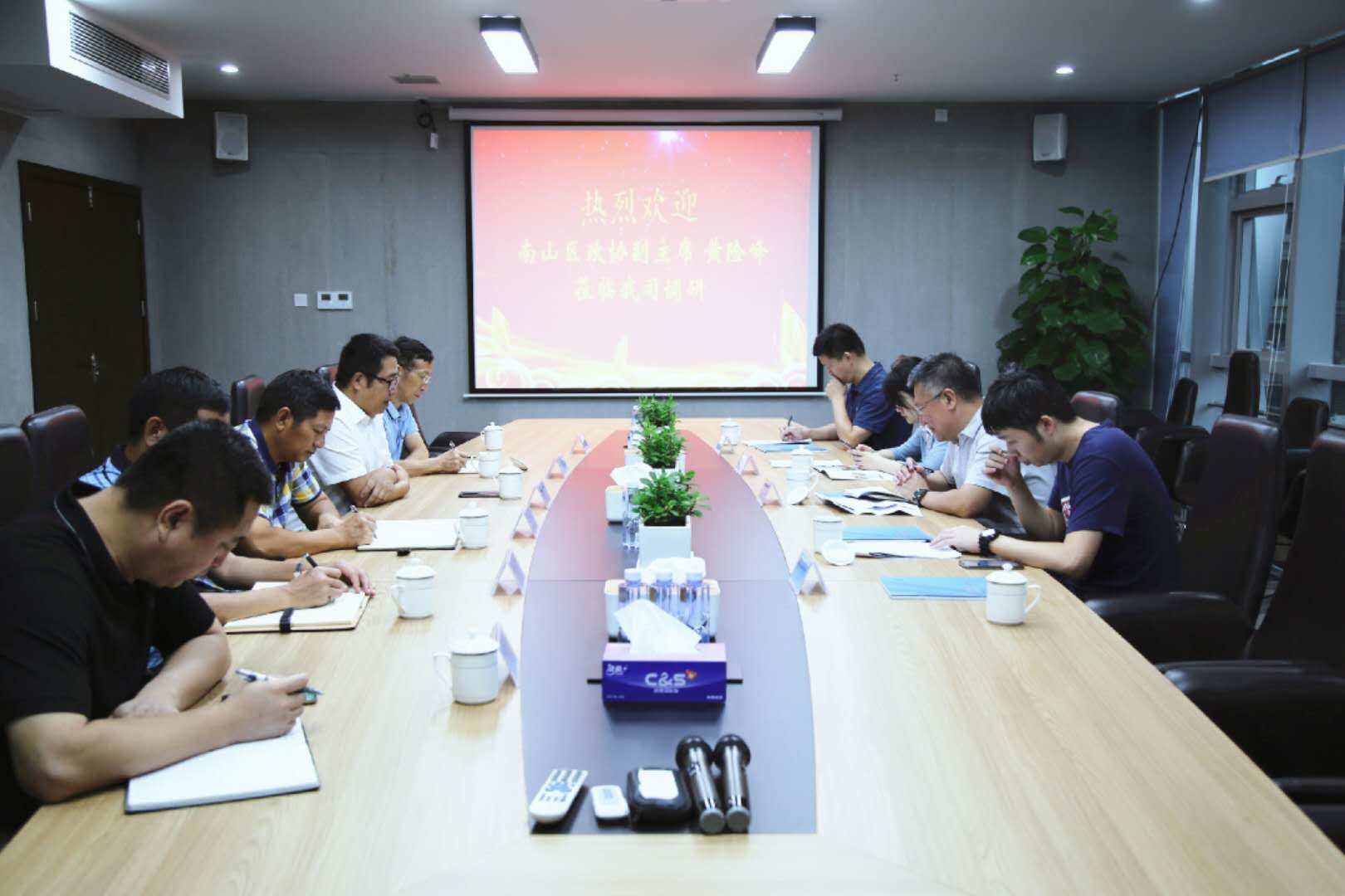 6月11日,深圳市南山区政协副主席黄险峰率区住建局、企业服务中心等有关领导一行4人莅临深圳港创建材股份有限公司调研指导工作,公司总经理孙文、常务副总经理张体贵及相关领导陪同调研。