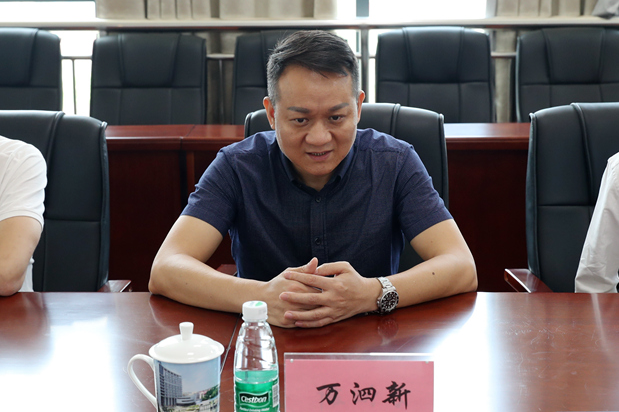魏寒柏书记首先代表学校对万总回到母校表示热烈欢迎,对公司一直以来给予学生的关爱和资助表示感谢,并详细介绍了学校改革发展状况及濂溪校区建设规划。魏书记指出,集团与学校的合作关系源远流长,作为校友创办的企业,集团对学校的工作给予大力支持,热心帮助学生解决学习、工作和生活中的困难,为学校的改革发展做出了积极贡献。