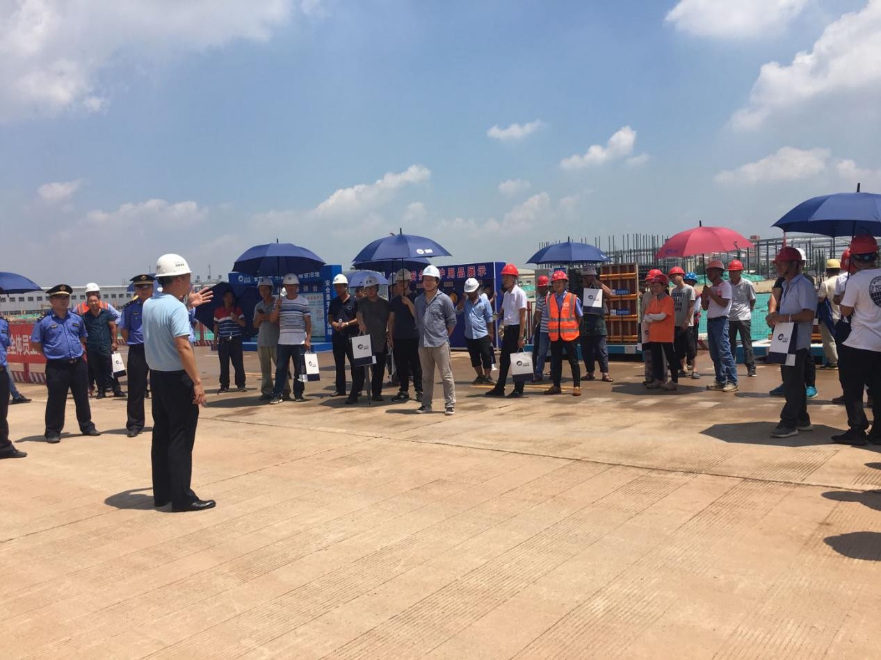 2019年6月是我国的第18个“全国安全生产月”,为强化安全意识,预防和遏制建设工程施工安全事故的发生, 6月28日,由佛山市三水区乐平镇国土城建和水务局(住建)主办,四川招港建设有限公司承办的2019年乐平镇工地安全教育暨文明施工参观学习活动在公司佛山三水宝湾模块化项目部举行。三水区、乐平镇住建局,镇安监、城管、环保分局等有关领导及辖区内在建工地施工单位代表、监理代表出席了活动。