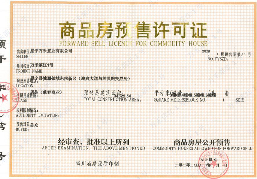 万禾滨江1号已取得商品房预售许可证