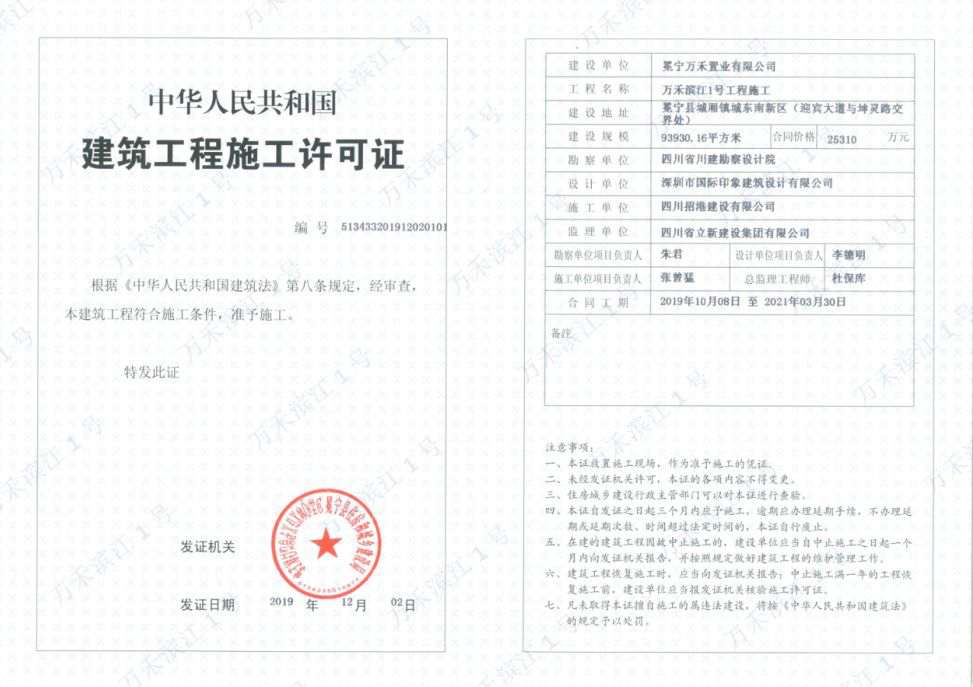 ▼建设工程施工许可证