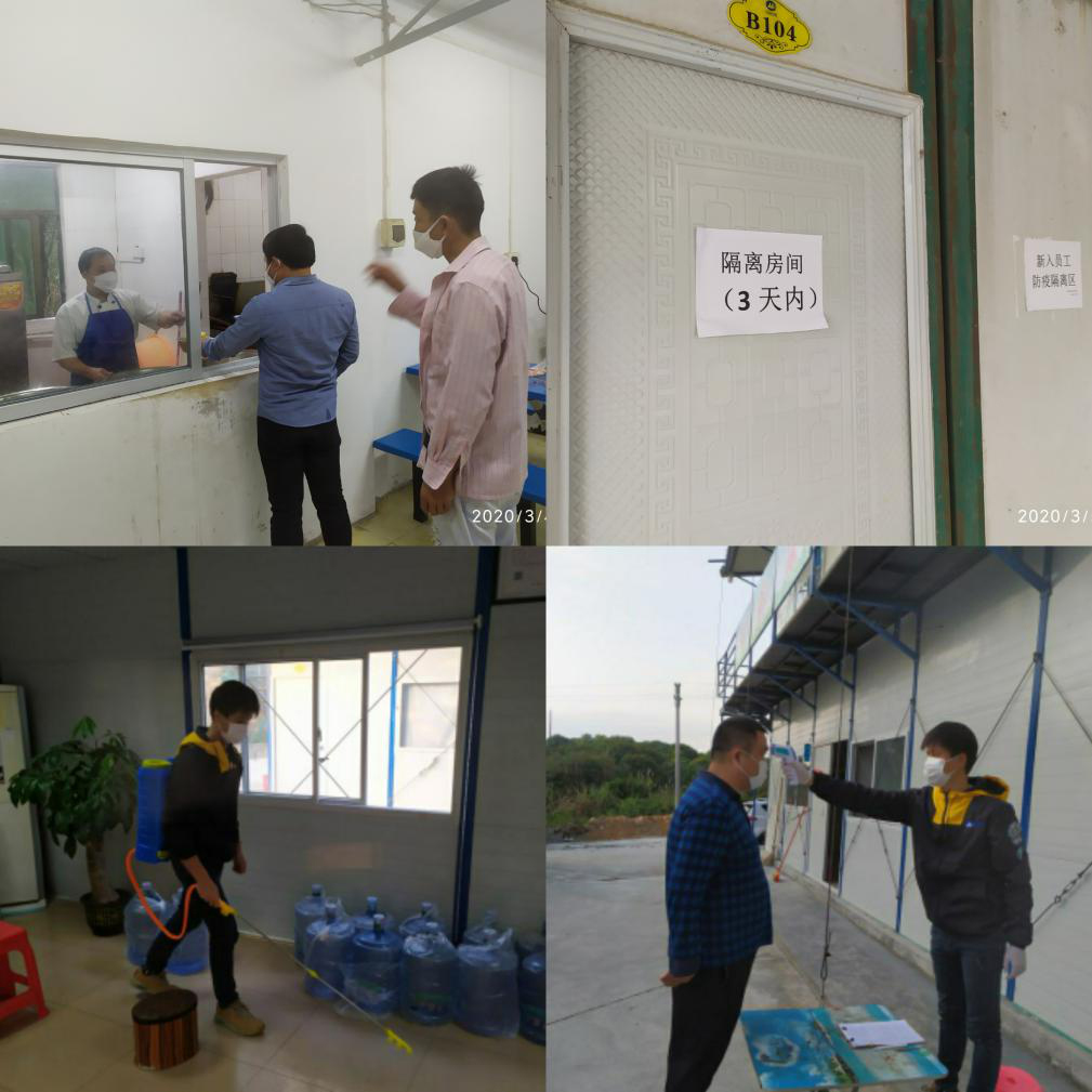 为保障疫情期间复工后的安全生产工作,公司严格按照《阳西信威防疫工作方案》、《阳西信威2020年复工复产方案》、《阳西信威疫情防控应急预案》开展工作。复工前,公司总经理邹九根分别召开了领导班子安全生产视频会议及全体员工视频会议。会议要求,疫情期间,确保各项防控措施落实到全过程、各环节,并倡导员工科学使用口罩,做好个人防护;对进入公司区域的人员及车辆,做好人员登记、体温检测、消毒,保持办公区域和生活区域的通风、消毒工作;异地返司员工须隔离7至14天,并实行全员分餐制;适时开展防疫知识培训及考试。