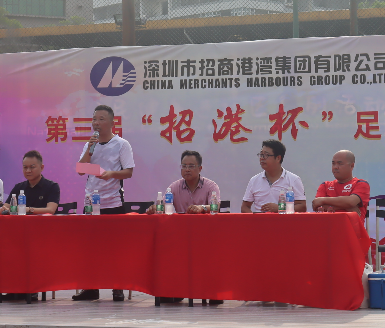 8月22日下午,足球赛正式开幕,集团董事长、总裁刘裕,集团常务副总裁叶存华、副总裁万泗新、总裁助理刘晓龙,深圳市蛇口招商港湾工程有限公司总经理李权锋、深圳港创建材股份有限公司总经理孙文出席开幕式并开球。集团董事长、总裁刘裕在开幕式上致辞并表示,持续开展运动比赛,是集团活跃员工文体生活,增强体质、增进交流的重要举措;希望全体参赛球员在比赛期间坚持以球会友、遵守规则、服从裁判、奋勇拼搏,充分展现“招港人”积极向上、团结进取的精神风貌。