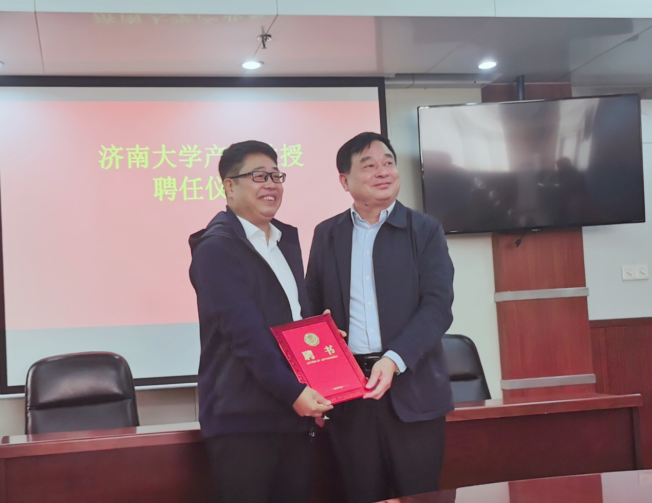 仪式上,王志副校长代表学校向孙总颁发了产业教授聘任证书;公司总经理助理张立民、济南大学教务处处长邱立平分别代表企业和学校与第四期“港创创新实验班”学生代表签订了三方协议。