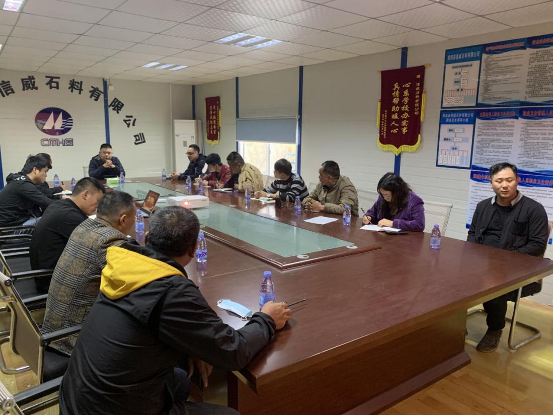 为顺利推动公司复工复产,做好节后员工收心工作,强化安全教育,夯实管理基础,规划公司2021年度工作,2月27日下午,阳西县信威石料有限公司总经理邹九根主持召开春节后复工复产专题会议,公司股东、各部门负责人及相关管理人员参加会议。