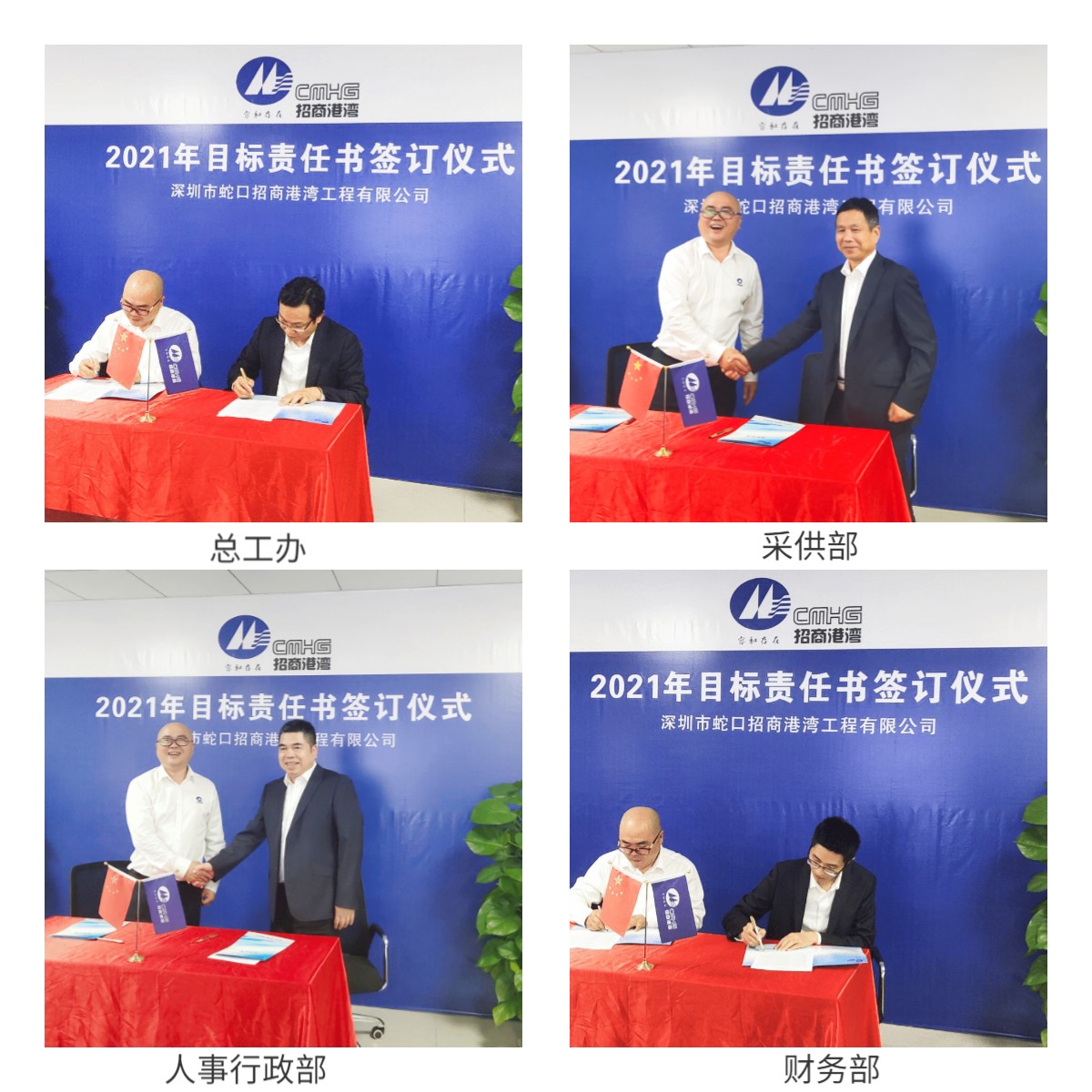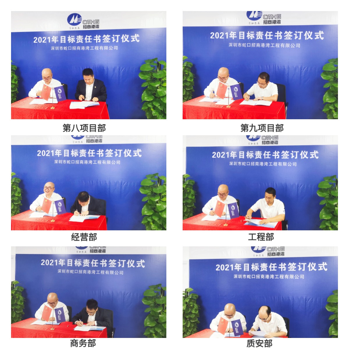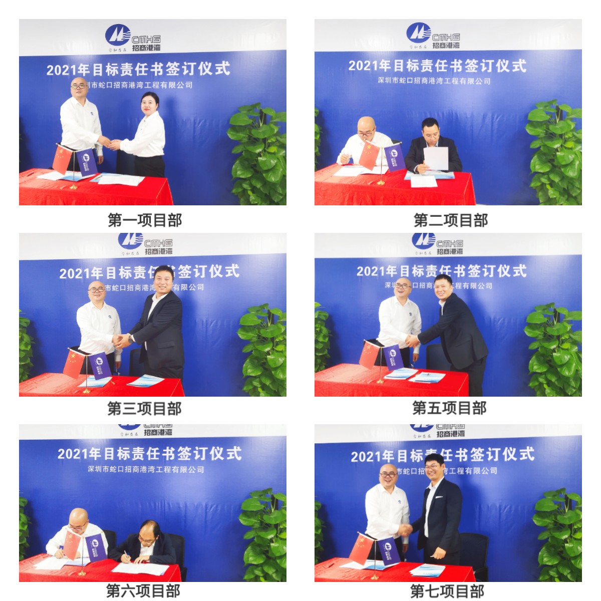 为确保公司2021年度经营目标的实现,建立完善的绩效管理体系和激励约束机制,强化企业执行力,提升核心竞争力,3月6日,深圳市蛇口招商港湾工程有限公司在公司四楼会议室举行2021年度目标责任书签订仪式。公司领导班子、各部门负责人及各大项目管理班子共计40余人参加签订仪式。
