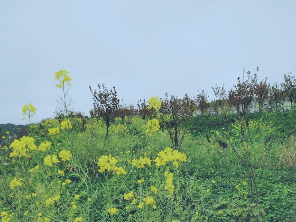 立于草地放眼望去,一株株充满朝气与阳光的油菜花点缀在草地上,随风舞动,不少孕育着果实的菜籽壳也正在日益壮大,虽看似纤细柔弱,但它踏实饱满的内里却承载着生命延续的希望;踏着松软的草地继续往前,仔细一看,忽觉今年的油菜花比以往更加茂密,疑惑不由得涌上心头,莫不是有人在这儿偷偷撒了种子?