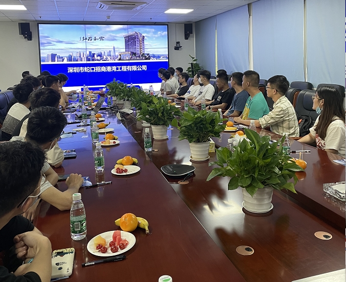 6月3日,深圳市蛇口招商港湾工程有限公司在公司4楼会议室召开2022届实习生见面会,公司书记苏国志主持会议,公司总工程师范志旺、总经理助理姜学军及各部门负责人出席,28名实习生参加会议。