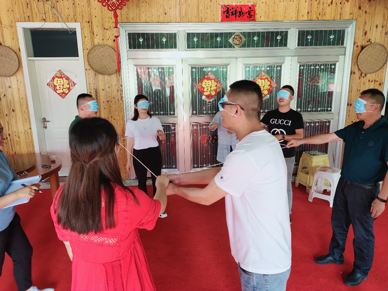 “携腿共进”同协作,分组拓展见默契。徒步结束后的分组拓展训练考验大家的团队协作、信任、默契、沟通。热身游戏丢手绢带领大家回忆儿童时代,感受童真快乐;训练项目盲人方阵中,经过反复试验摸索,大家在带上眼罩的情况下,完成了正方形方阵、三角形方阵的任务;绑腿跑项目中,大家肩并肩“携腿共进”,默契配合;你划我猜项目中,负责比划的队员表演生动幽默,在引得大家开怀大笑的同时,也成功传达了重要信息。最终,棉花组在训练过程中表现出色,获得了最终胜利和活动奖品。
